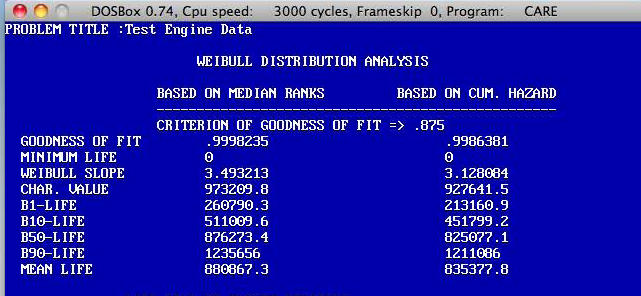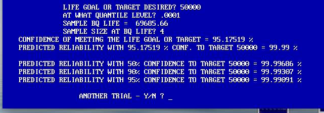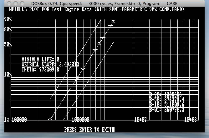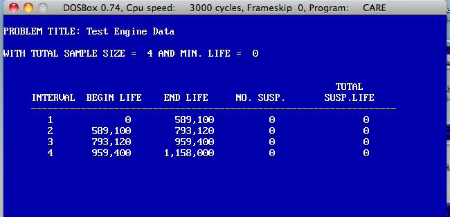 Four engines are tested to a major failure and the mileages are 589,000; 793,120; 959,400, and 1,158,000 Miles. Based on this one test of four engines, would you be able to accept the product as the one, which would comply with your desired profitability and reliability goals? If, not, what then? The CARS software can assist you in determining the acceptability of your product's performance by just enter the necessary input values --- the failure mileages and the CARS software does the rest.
