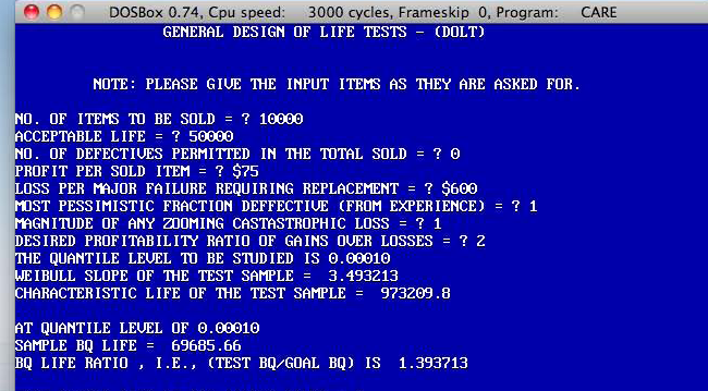 Today, engineering excellence must include a well-managed assessment of design reliability and validation methods. The cars software can help you to achieve that. For example, suppose your company wants to sell a certain product, like an engine, with a sale volume of 10,000 units. Your job is to establish an acceptable life of 50,000 miles before any major failure, wanting none of these units sold to have a major failure before 50,000 miles. The profit if complying is $75 for each engine sold while non-compliance would produce a loss (replacement costs) of $600 if a major failure occurred before 50,000 miles. According to these criteria, your company would like to have the profits from sales to be at least twice all replacement losses due to major failure before 50,000 miles.