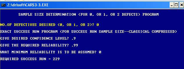 For example, suppose there is a situation in which a Reliability of 99% is being demanded with 90% Confidence to a required life under specific operating condition such as survival to 2,000 Hours (bogey) for an engine. How many consecutive successes are required for these engines? What about when one of the test engines in the sample was defective (i.e., did not last 2,000 Hours), how many more engines must be tested? According to the classical Binomial Probability Theory, it demands that we test 229 such engines to bogey without a single failure and 382 engines with only one defective allowed. It can be seen that the classical approach is totally impractical for such attribute testing programs.